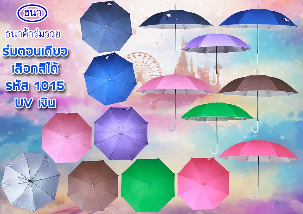 ร่มตอนเดียว ได้ชื่อว่าเป็น ร่มที่แข็งแรงมาก ใช้เป็น ร่มกันแดด ร่มกันฝน ได้ดี เพราะเป็นร่มที่สุดยอดอีกรุ่นหนึ่งที่มีความนิยมเป็นอย่างมาก คุณลูกค้าจะเห็นว่า ร่มตอนเดียว มีขนาดแกนที่ใหญ่ และมีความแข็งแรง ร่มรุ่นนี้เราทำมาเพื่อให้คุณลูกค้าได้ใช้งานได้อย่างสบายใจ ในความแข็งแรง และเหมาะที่จะทำเป็นของชำร่วย เพราะคุณลูกค้าส่วนใหญ่จะรู้ว่าก้านที่มากและแกนเหล็กที่หนาจะช่วยให้แข็งแรงขึ้น จะได้ชื้อไปเป็นของชำร่วยในงานสำคัญ หรือ วันสำคัญได้